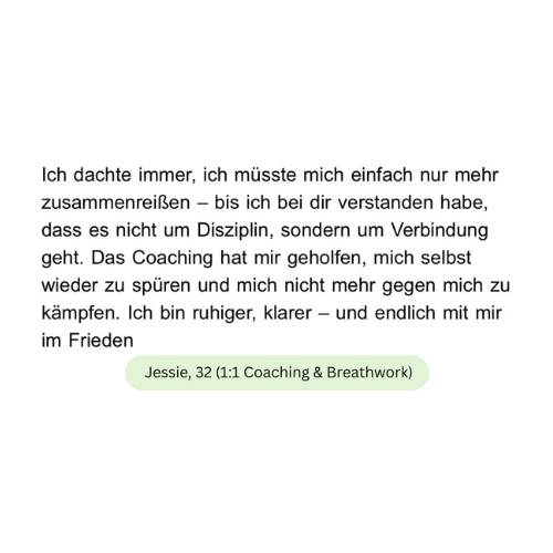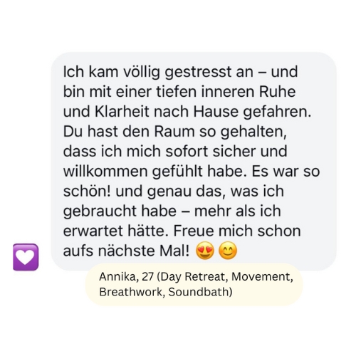 Du hast mir gezeigt, wie ich mein Nervensystem beruhigen und wieder Kraft schöpfen kann – und dass Selbstfürsorge nicht egoistisch, sondern essenziell ist.